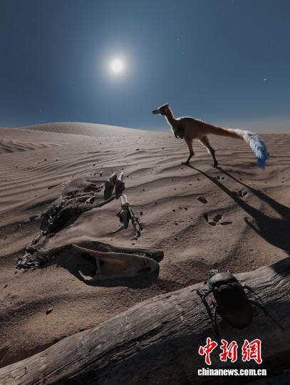 原项研讨的恐龙化石光复艺术设想图:约9500万年前,1只警丘纤腿龙正在戈壁中正从共类凋谢的骨架旁走过(图片作家Gabriel Diáz Yantén)。施普林格·天然 供图 论文作家透露,警丘纤腿龙化石骨架的完备性,使研讨者得以从头解读阿我瓦雷斯龙类群的来源。这次研讨发明,恐龙演变微型化的表明其实不弥漫,字据反而扶助正在局促体型鸿沟内乱屡次自力演变的观念。(完)